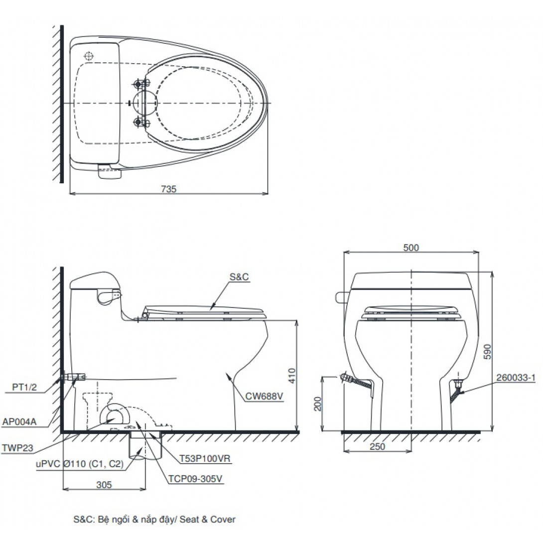 Bồn Cầu TOTO MS636DT8 1 Khối Nắp TC600VS