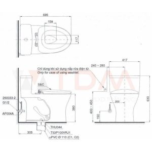 Bồn Cầu TOTO MS904T8 Một Khối Nắp Êm TC600VS