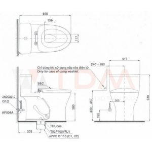 Bồn Cầu TOTO MS904T8 Một Khối Nắp Êm TC600VS