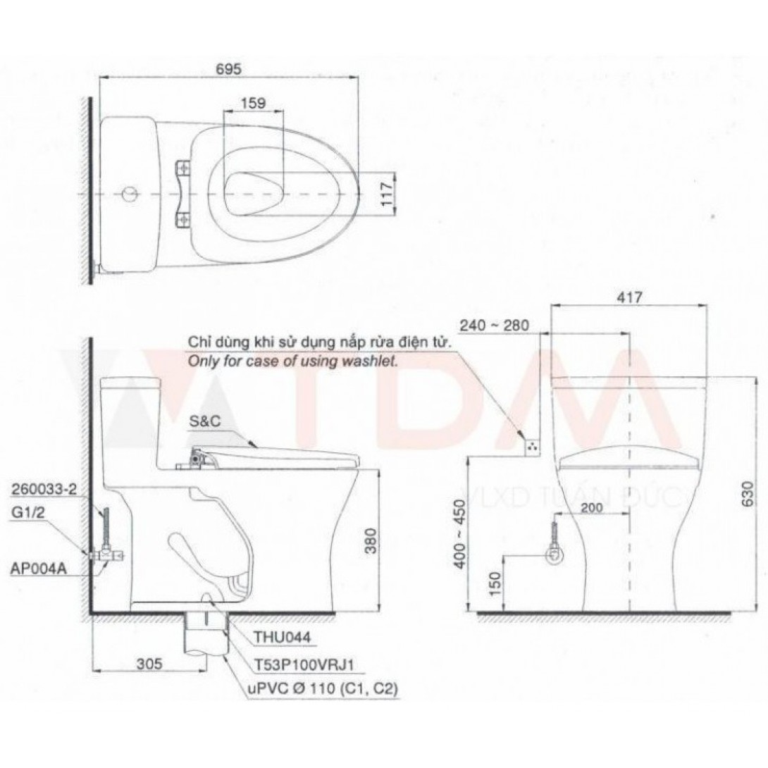 Bồn Cầu TOTO MS855DE4 Một Khối Nắp Cơ