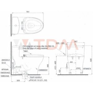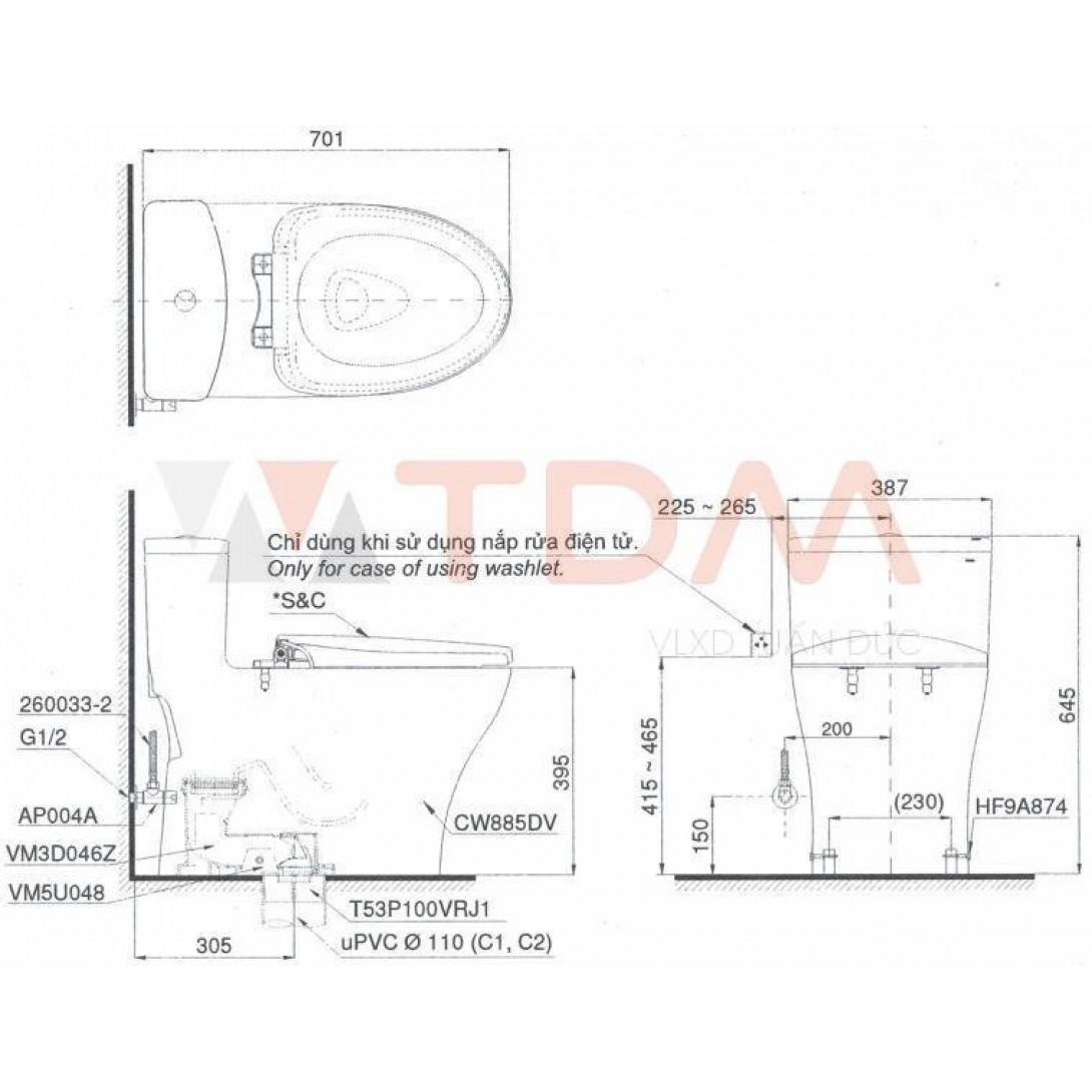 Bồn Cầu TOTO MS855DE4 Một Khối Nắp Cơ
