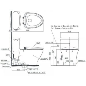 Bồn Cầu TOTO MS625DE4 1 Khối Nắp Rửa Cơ TCW1211A
