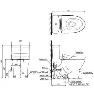 Bồn Cầu TOTO MS636DT8 1 Khối Nắp TC600VS