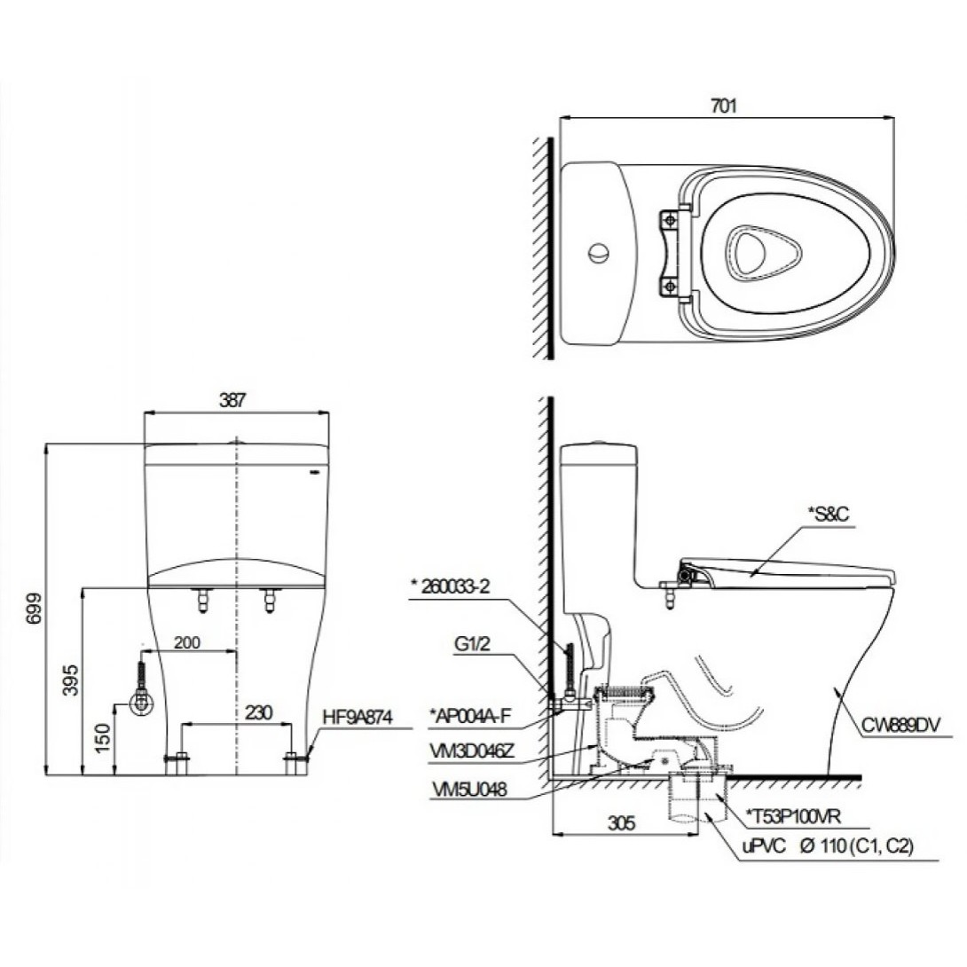 Bồn Cầu TOTO MS636DT8 1 Khối Nắp TC600VS
