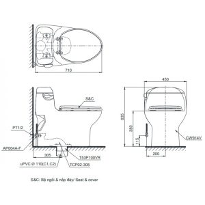 Thông tin cơ bản bồn cầu TOTO MS914RT8