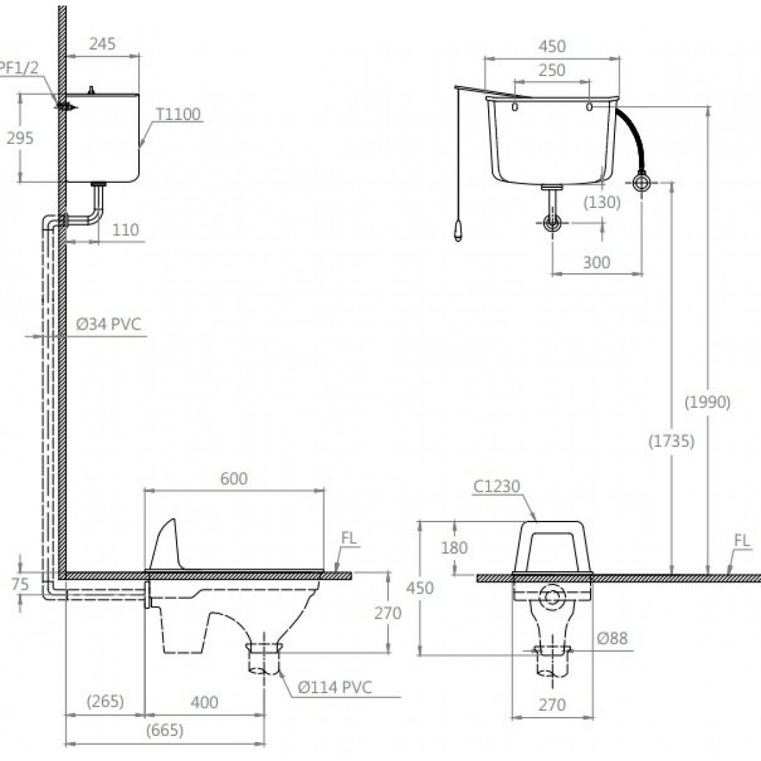 Thân Bồn Cầu TOTO CW192K/TC281SJ Treo Tường