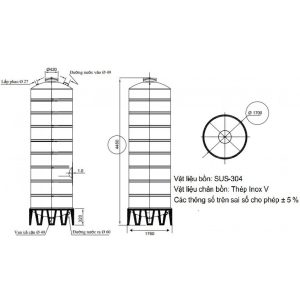 Thông số bồn nước inox Đại Thành 10000 lít đứng SUS 304