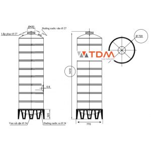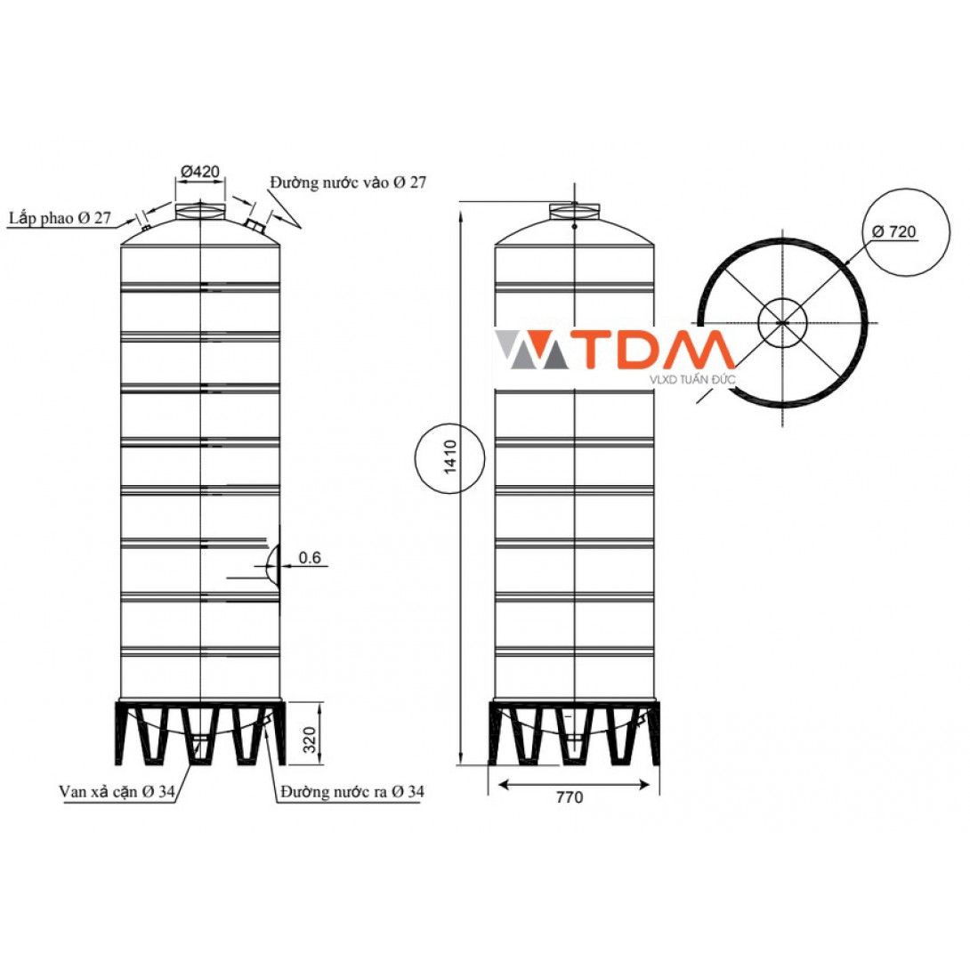 Bản vẽ téc nước inox 500 lít Đại Thành SUS 304
