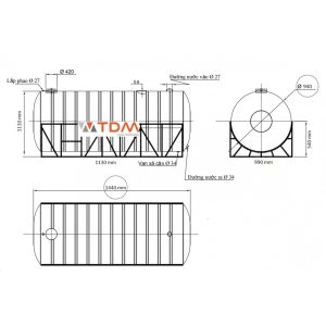 Bản vẽ téc nước inox 1000 lít nằm Đại Thành SUS 316