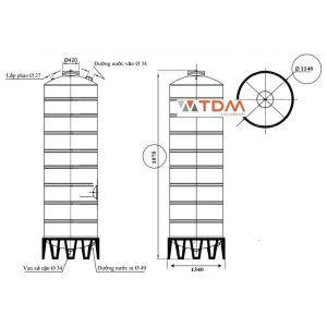 Bản vẽ téc nước inox 2000 lít đứng SUS 304 Sơn Hà