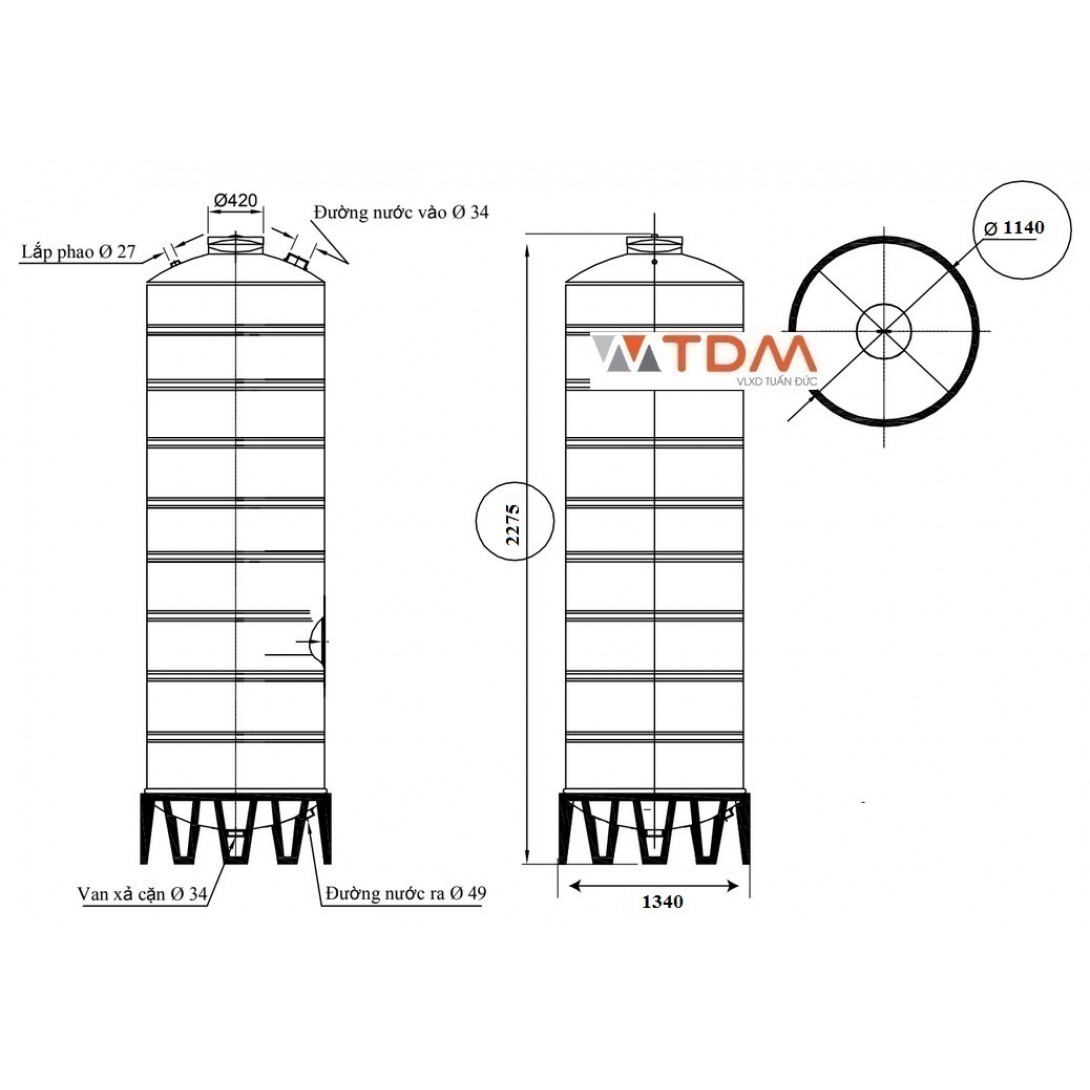 Bản vẽ téc nước inox 2500 lít đứng SUS 304 Sơn Hà