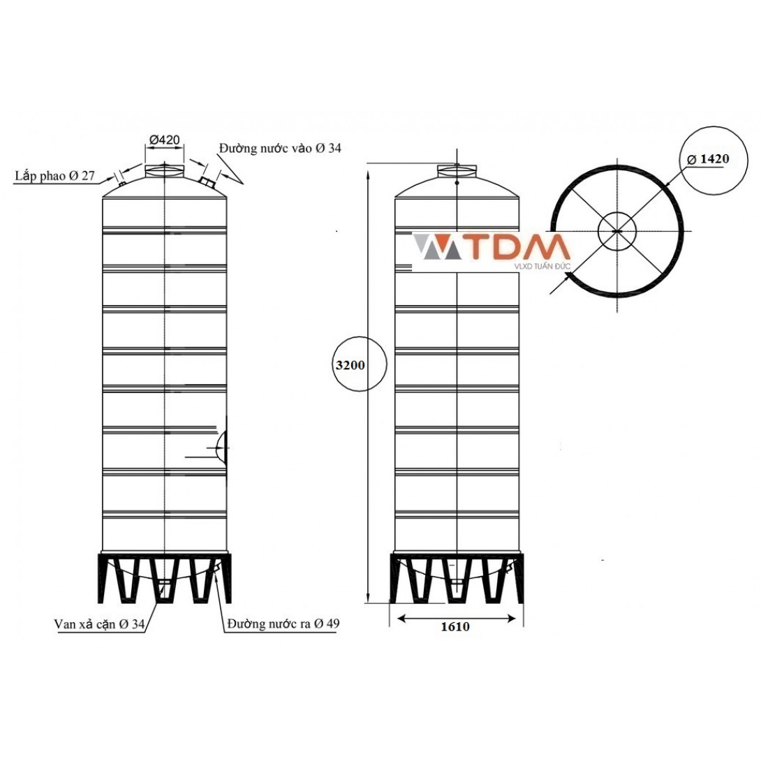Bản vẽ téc nước inox 4500 lít đứng SUS 304 Sơn Hà phi 1420