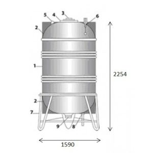 Kích thước: đường kính x chiều cao tổng 1420 x 2254(mm)