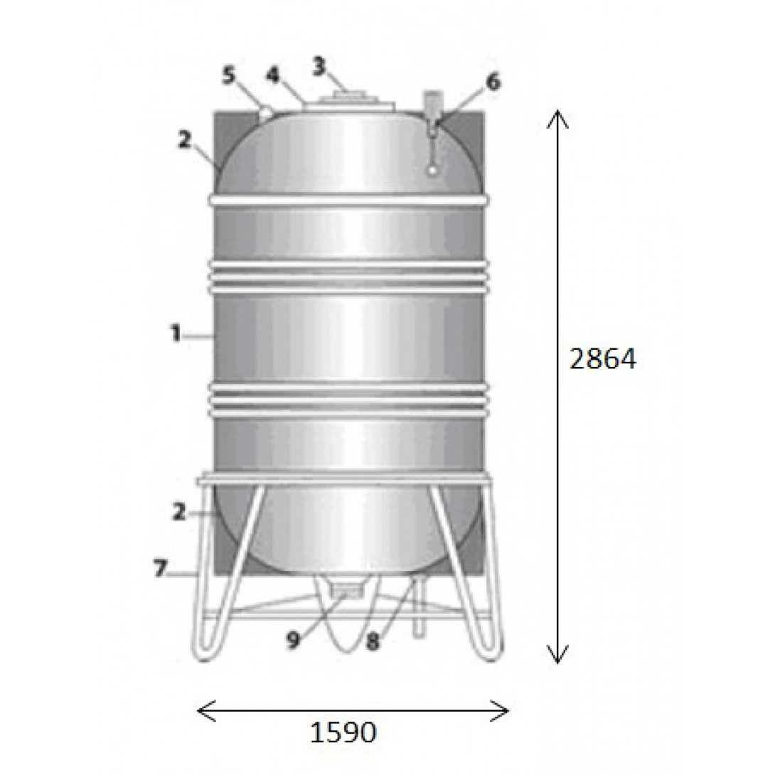 • Kích thước: đường kính x chiều cao tổng 1420 x 2864(mm)