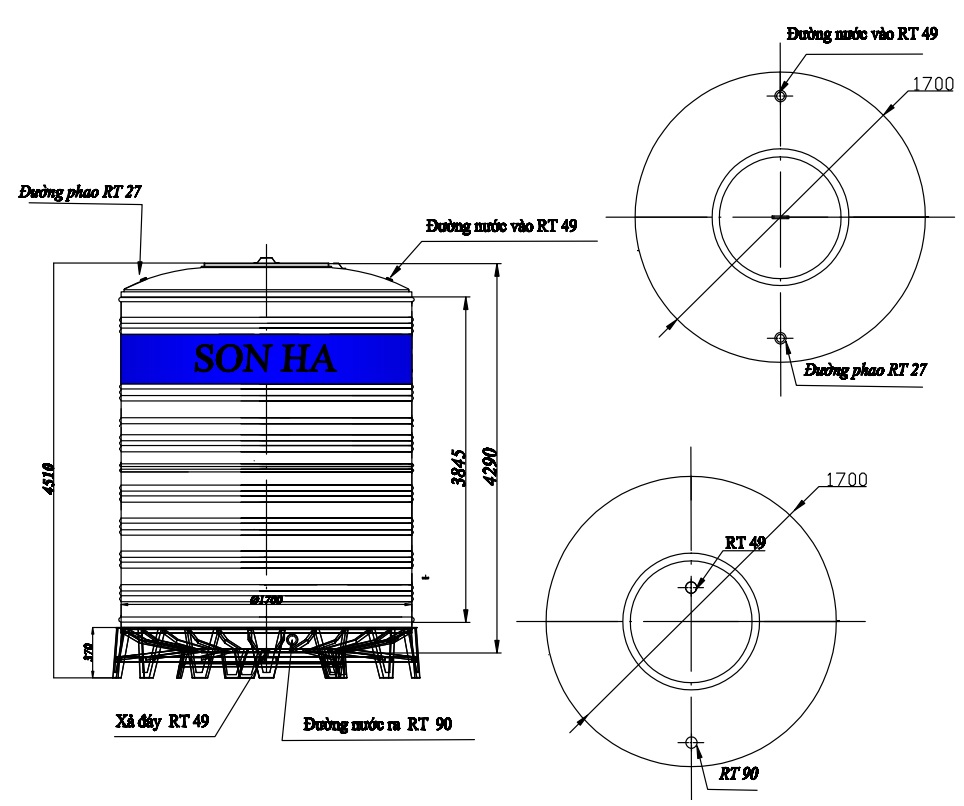 Bản vẽ téc nước inox 10000 lít đứng SUS 304 Sơn Hà phi 1700