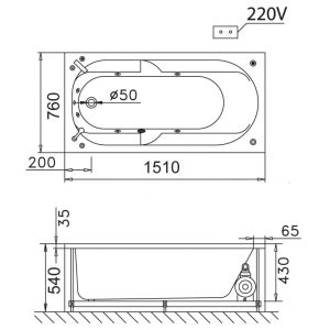 Bồn Tắm Xây 1.4M CAESAR AT0440