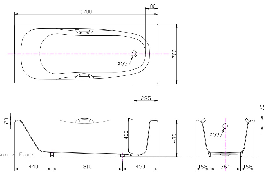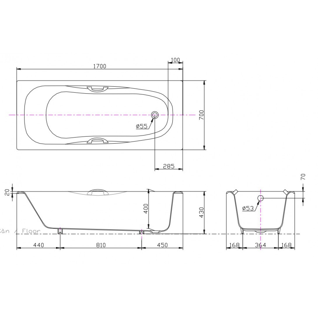 Bồn Tắm Xây Natural American Standard BTAS2735 Thép Tráng Men 1.7M