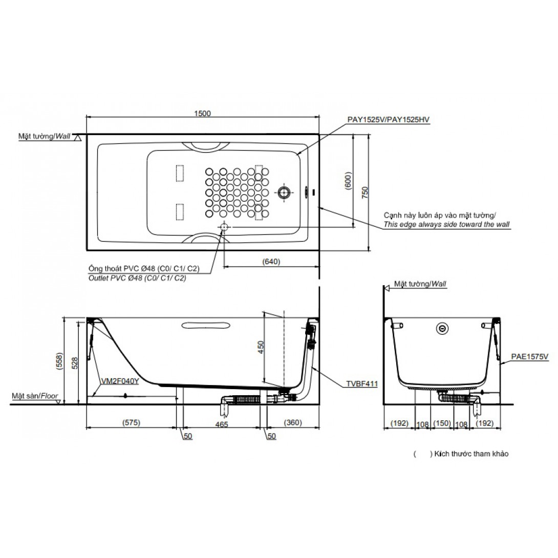 Bồn Tắm TOTO PPYB1710RHPE#P/TVBF411 Ngọc Trai Massage 1.7M