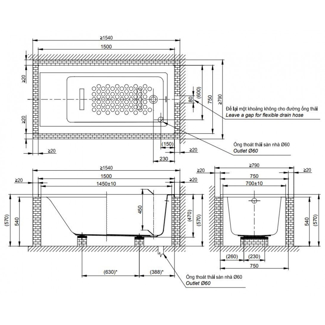 Bồn Tắm Xây American Standard 70280-WT (70280WT) New Codie 1.5 Mét