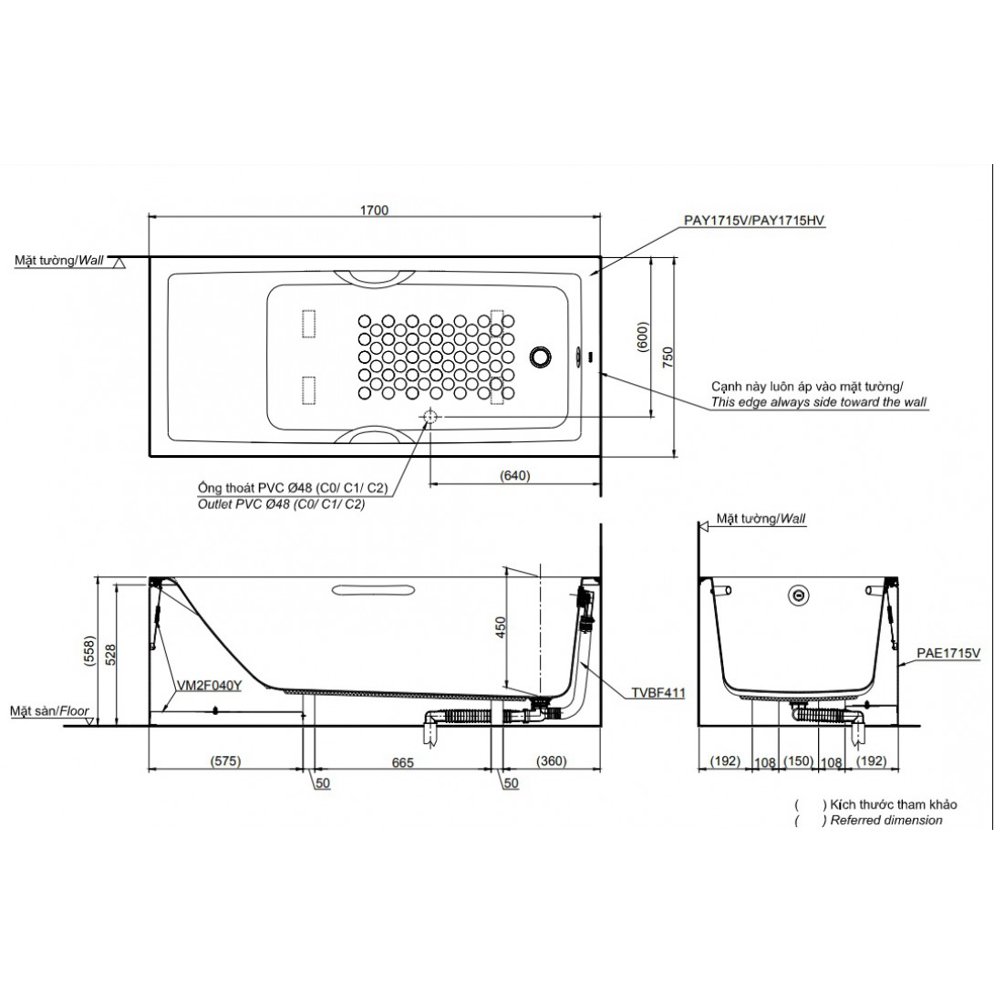 Bồn Tắm TOTO PPYB1710RHPE#P/TVBF411 Ngọc Trai Massage 1.7M
