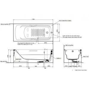 Bồn Tắm TOTO PJY1704HPWE#GW Bóng Nhựa FRP 1.7M