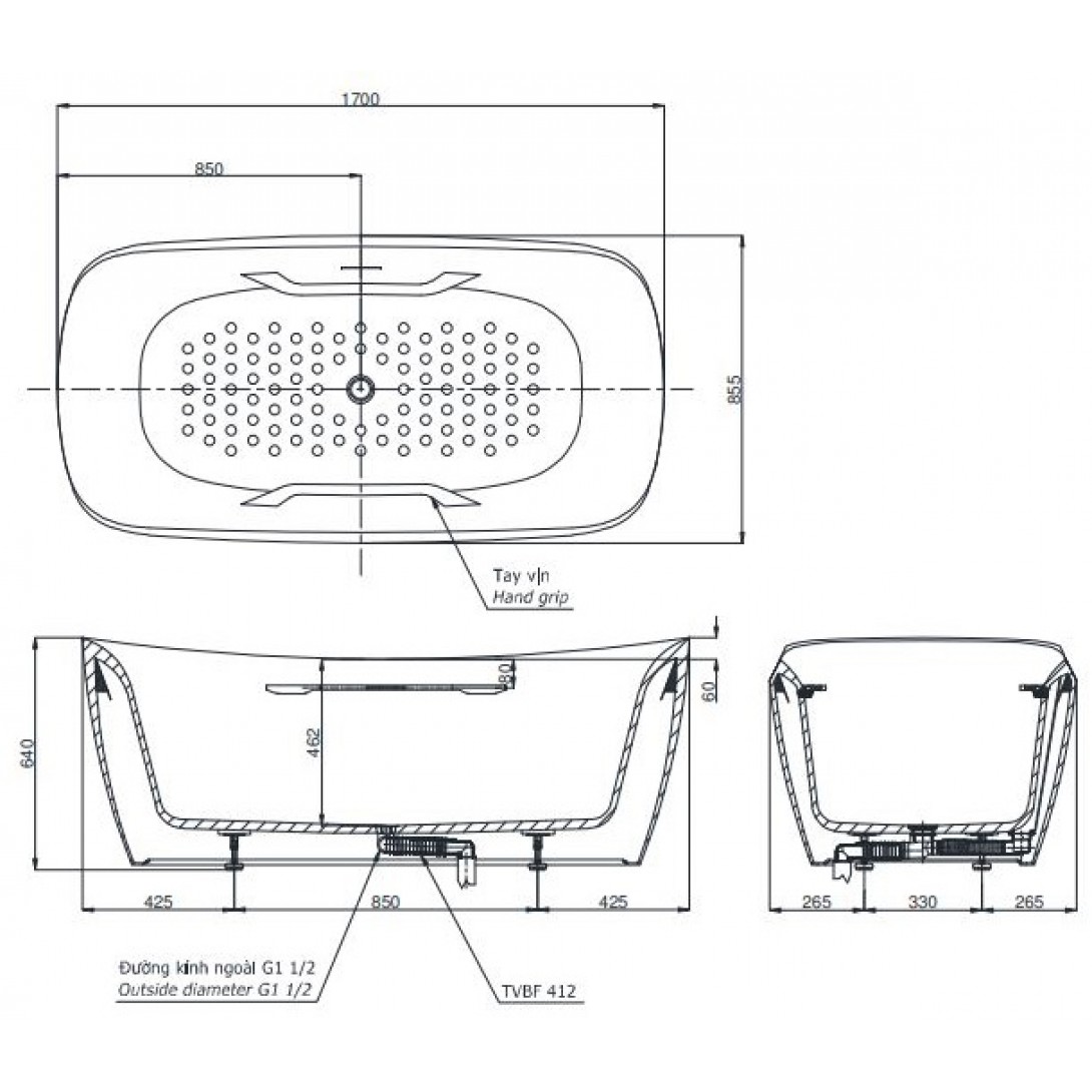 Bồn Tắm TOTO PPYB1710RHPE#S/TVBF411 Ngọc Trai Massage 1.7M