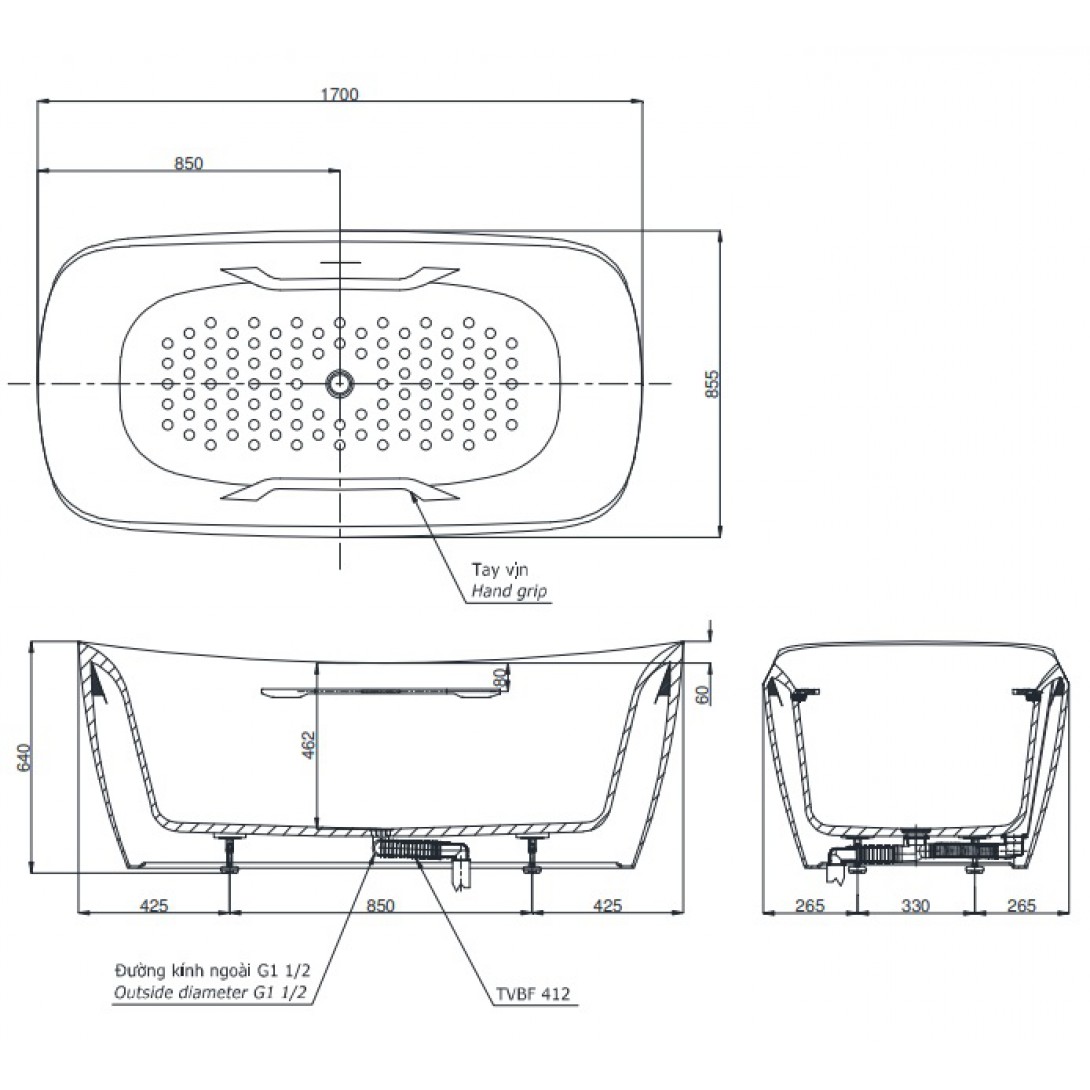 Bồn Tắm TOTO PPYB1710RHPE#P/TVBF411 Ngọc Trai Massage 1.7M