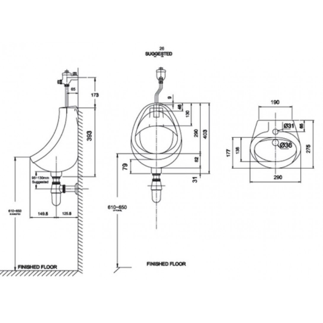 Bồn Tiểu Nam COTTO C3080 Baron Treo Tường