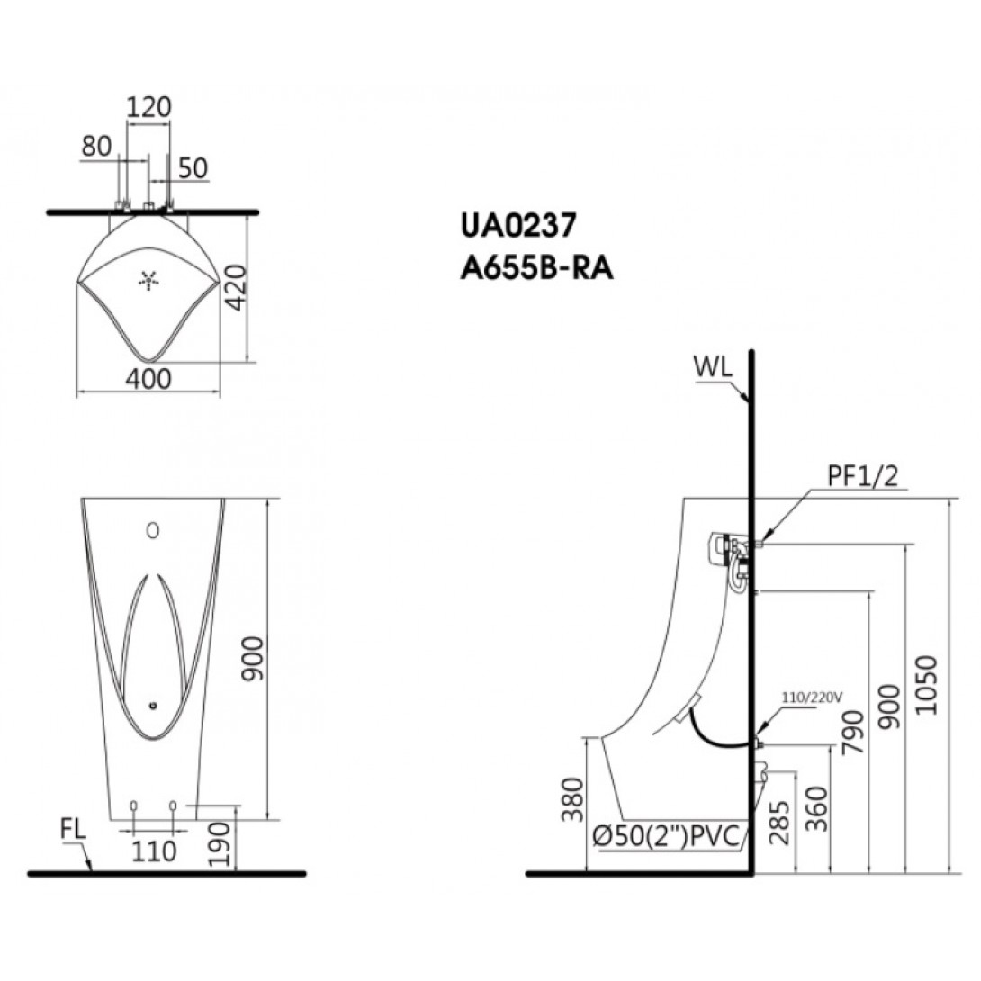 Bồn Tiểu Nam TOTO USWN900AS#XW HHF90603 Cảm Ứng Dùng Điện Ewater+