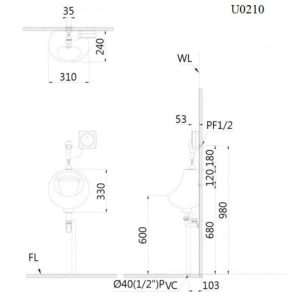Bồn tiểu U0210 có thể lắp đặt với các van xả bồn tiểu sau: BF410, BF412G, A652DC, A623,…