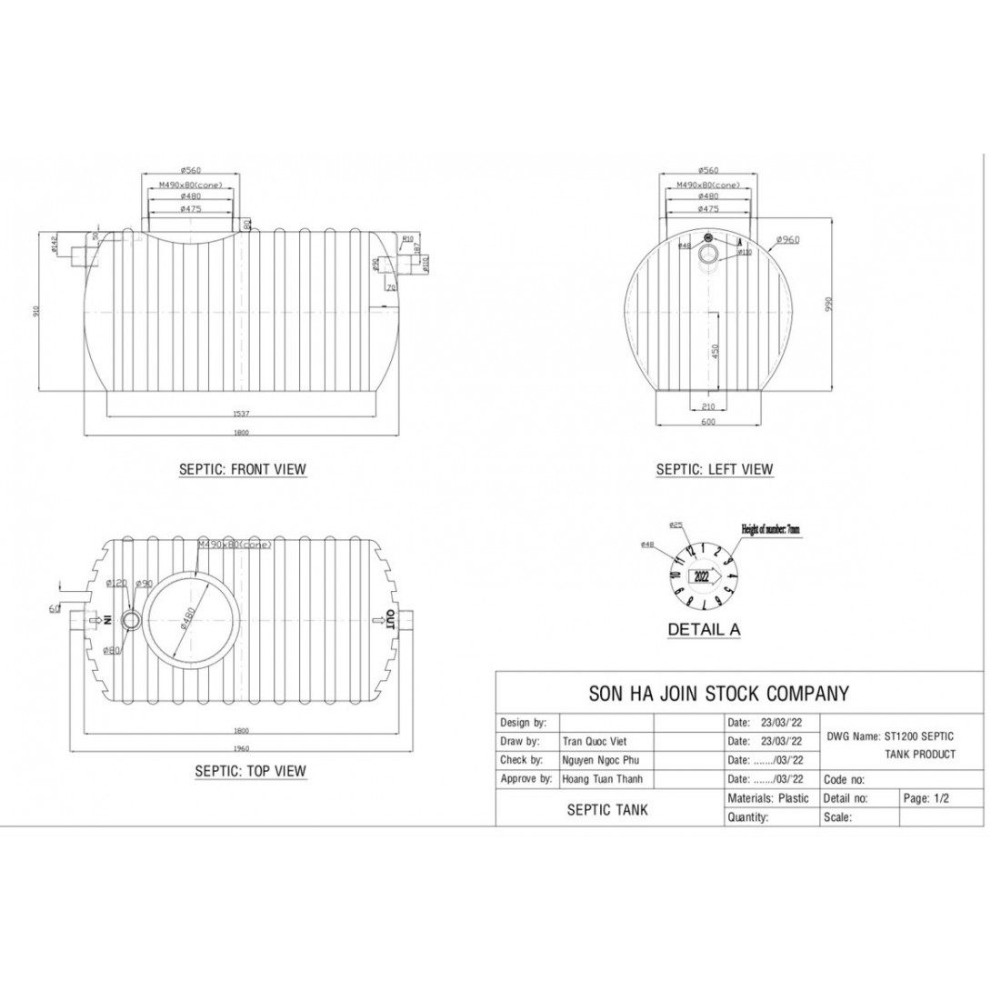Bồn Tự Hoại Septic Sơn Hà 1800L ST1800N