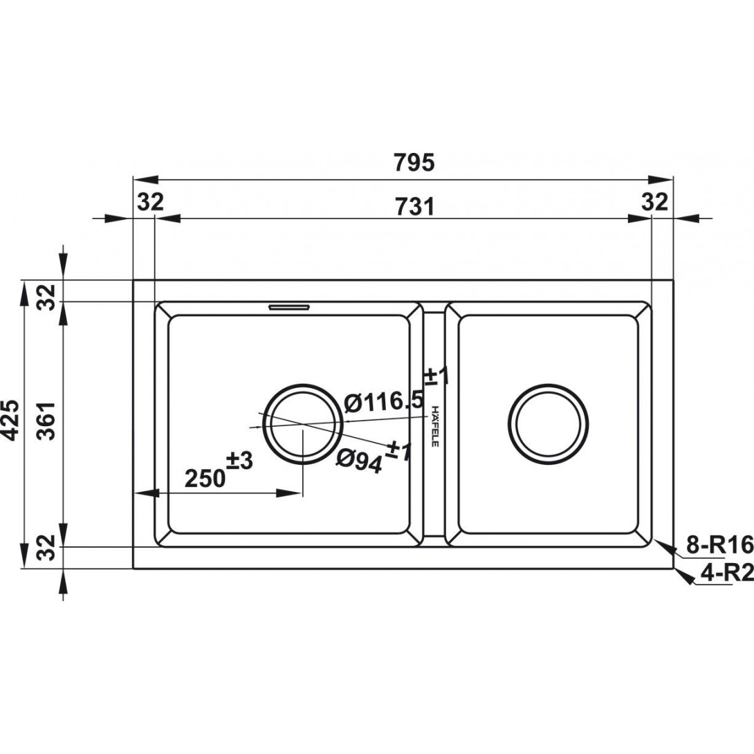Bản vẽ chậu đá 577.25.410 Hafele 2 hộc