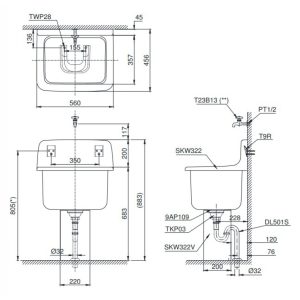 Bồn Cầu TOTO MS905T8 Một Khối Nắp TC600VS