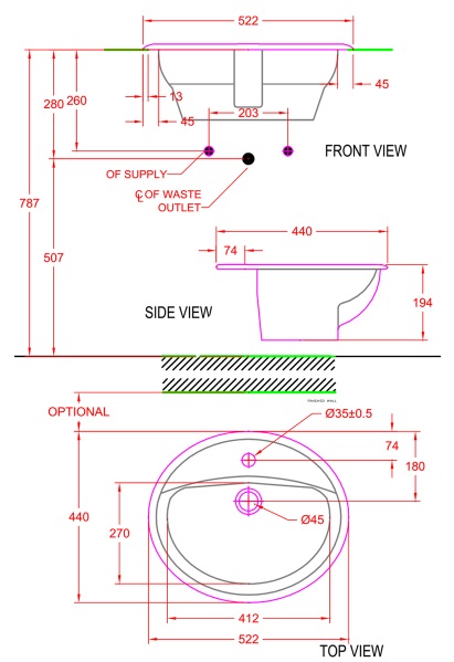 Chậu Rửa Mặt Lavabo Grohe 39317000 Projectline Âm Bàn