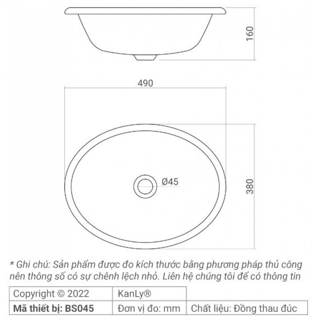 Bản vẽ kích thước chậu rửa mặt Kanly BS 045