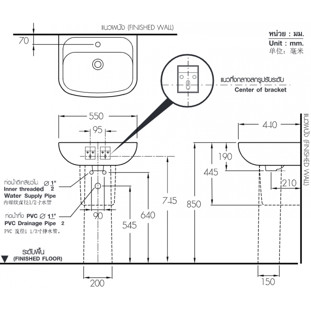 Chậu Rửa Mặt Lavabo COTTO C02237 Riviera Bán Âm Bàn