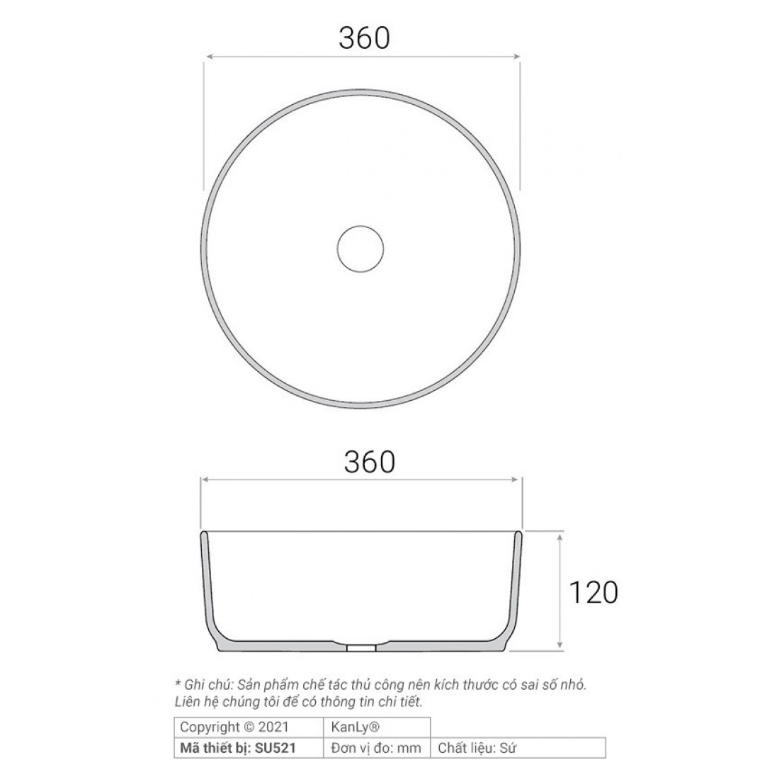 Bản vẽ kích thước chậu lavabo SU 521 tròn màu nâu