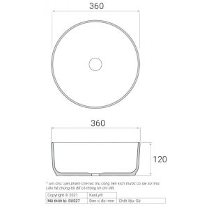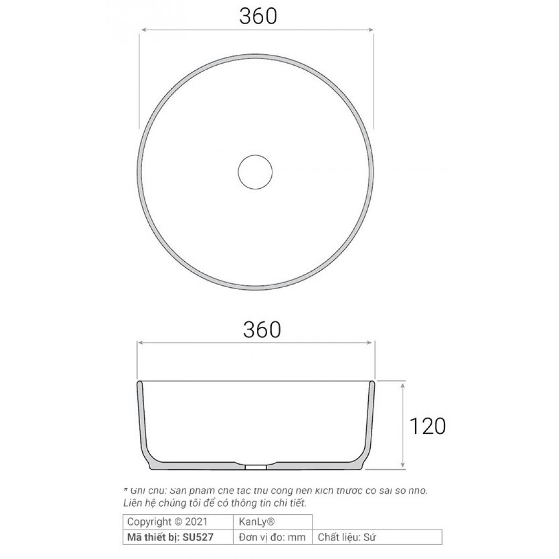Bản vẽ kích thước chậu lavabo SU 527 tròn màu xám