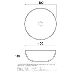 Bản vẽ kích thước chậu lavabo SU 513 tròn màu trắng