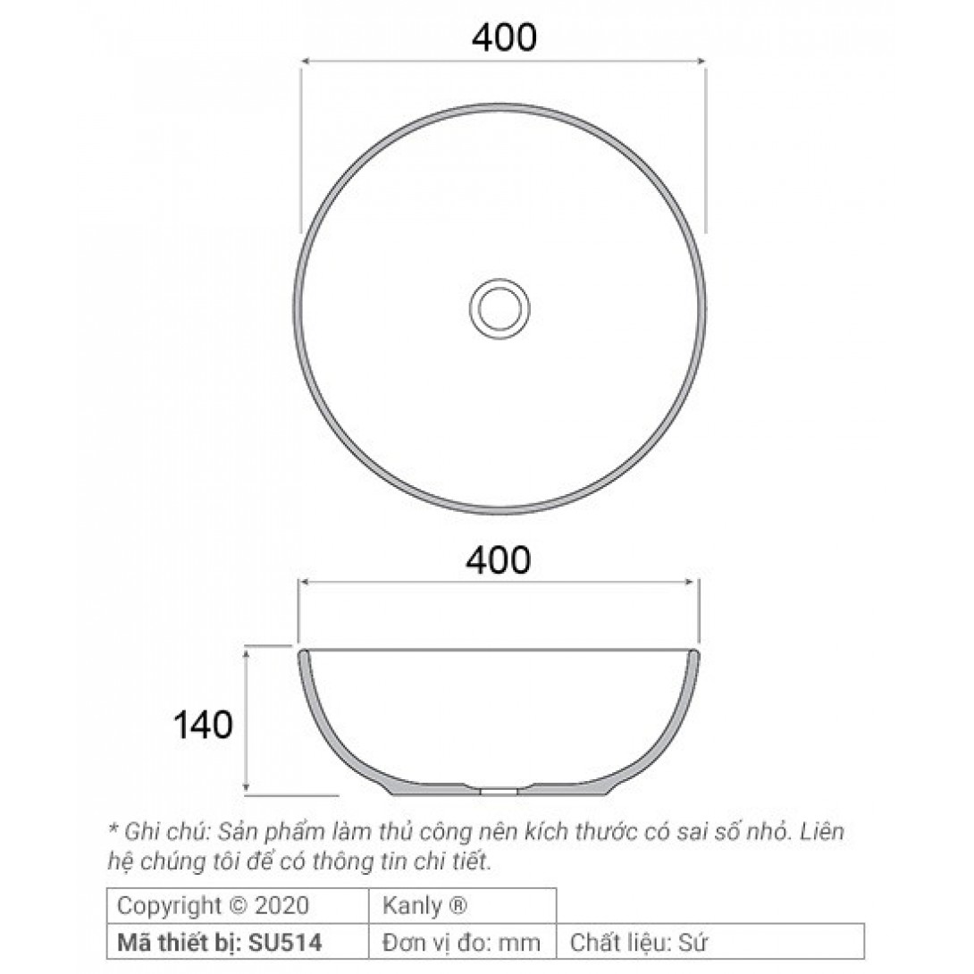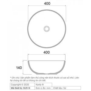Bản vẽ kích thước chậu lavabo SU 514 tròn màu vàng