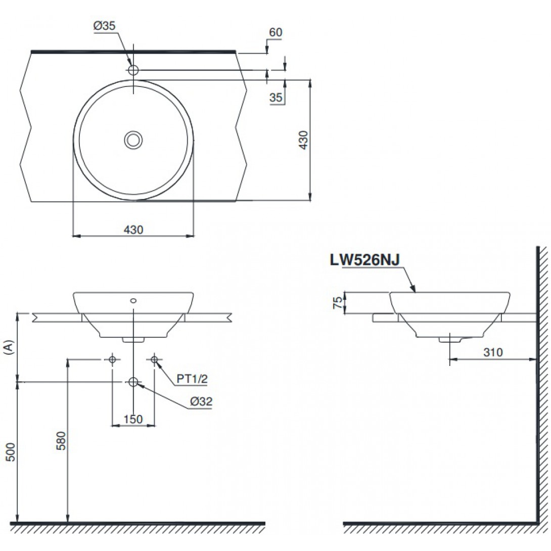 Chậu Rửa Mặt Lavabo COTTO C0240 Julia Bán Âm Bàn