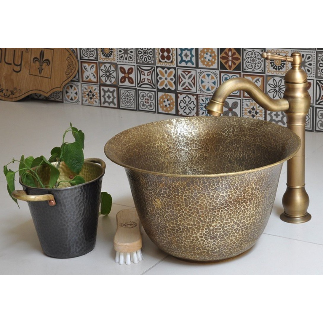 • Chậu rửa bằng đồng, bồn bằng đồng, lavabo đồng, chậu đồng, lavabo đồng kiểu cổ bằng đồng thau(màu vàng), sản phẩm do thợ hàn gò của làng nghề truyền thống thủ công Việt Nam chế tác từng chiếc, không có dây chuyền công nghệ máy móc.