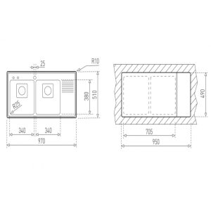 Bản vẽ kỹ thuật chậu rửa chén bát Teka Frame FR97DL