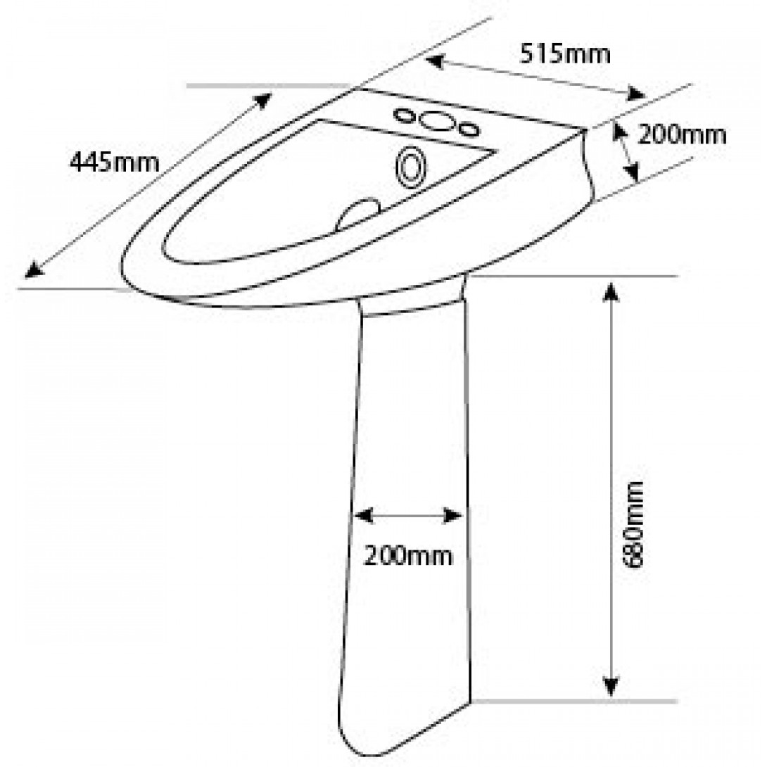 – Kích thước chân chậu (RxC): 200 x 680 mm