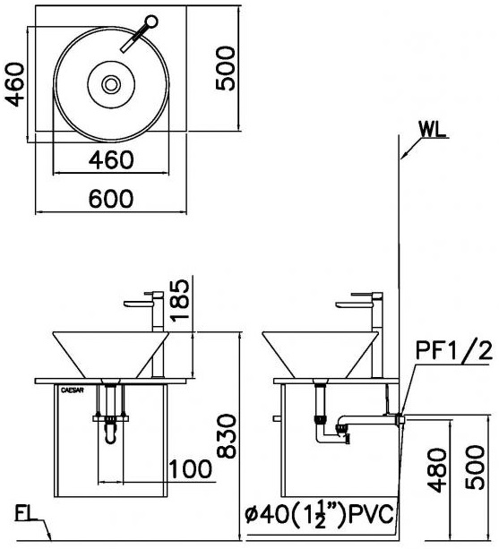 Chậu Rửa Mặt Lavabo COTTO C0240 Julia Bán Âm Bàn