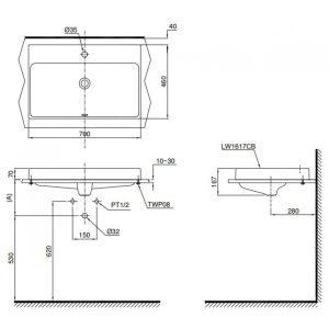 Chậu Rửa Mặt Lavabo COTTO C0225 Kate Bán Âm Bàn