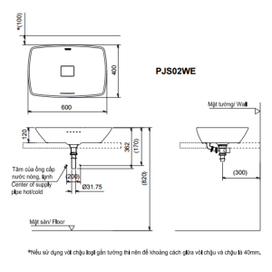 Chậu lavabo TOTO đặt trên bàn đá PJS02WE#MW của hãng thiết bị vệ sinh TOTO