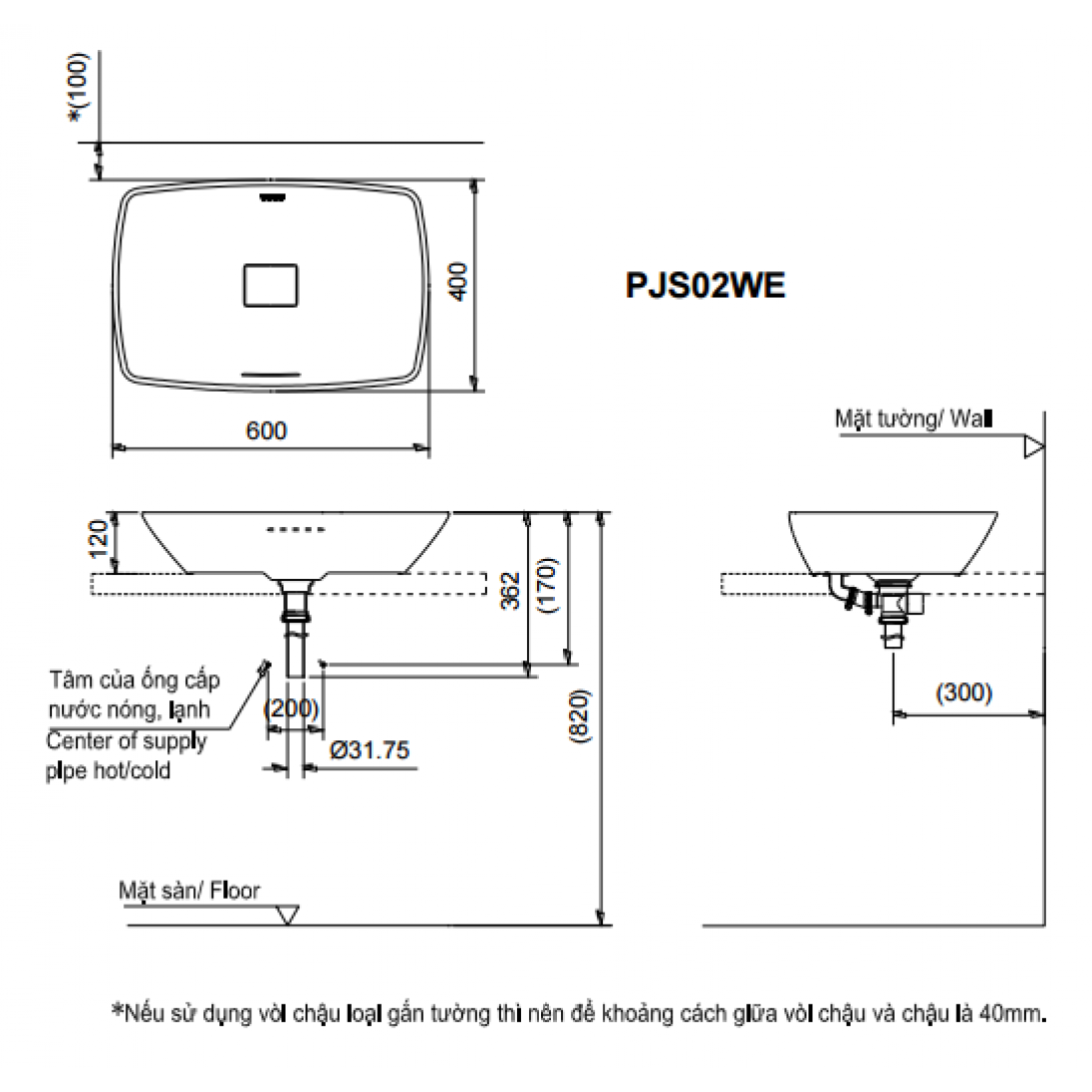 Chậu Rửa Mặt Lavabo COTTO C02237 Riviera Bán Âm Bàn