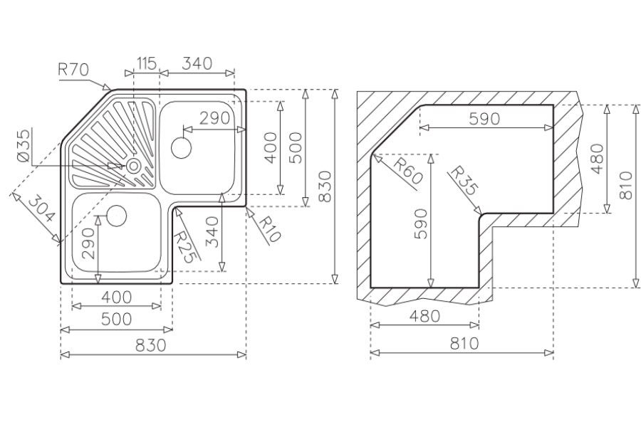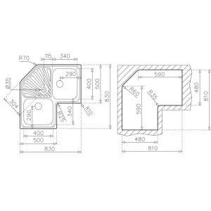 Bản vẽ kỹ thuật chậu rửa inox Teka Angular 2B 10118005