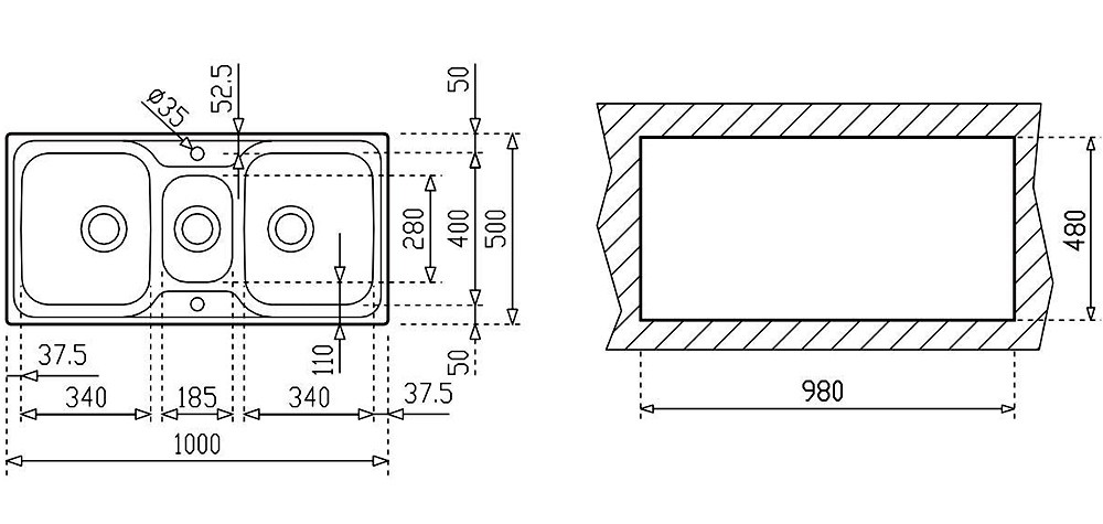 Bản vẽ kỹ thuật chậu rửa chén bát Teka Classic 2 1/2 B 10119080
